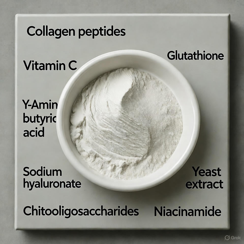 الكولاجين البحري مع فيتامين C و يعملان على توحيد لون البشرة وتحفيز إنتاج الكولاجين الطبيعي.